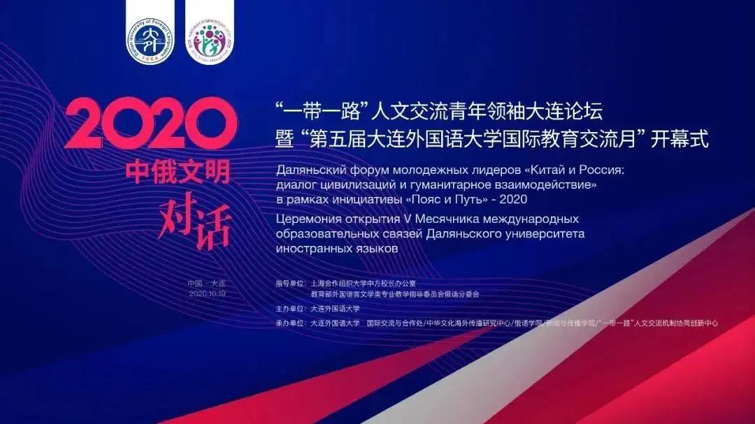 、”一带一路“人文交流机制协同创新中心承办的”2020中俄文明对话:’一带一路‘人文交流青年领袖大连论坛暨‘第五届大连外国语大学国际教育交流月’开幕式“在大连外国语大学召开。400余位专家学者聚首云端。