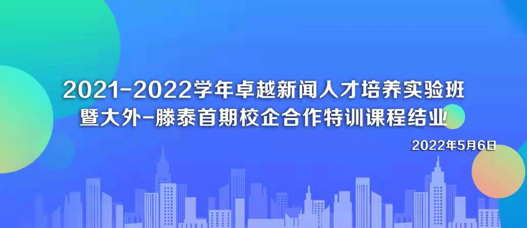 与滕泰科技(大连)有限公司联合举办2021-2022学年卓越新闻人才培养实验班暨大外—滕泰首期校企合作特训课程结业仪式。活动由滕泰科技特训课程班主任季哲老师主持,滕泰科技全媒体总监谭乃夫、国际博彩平台