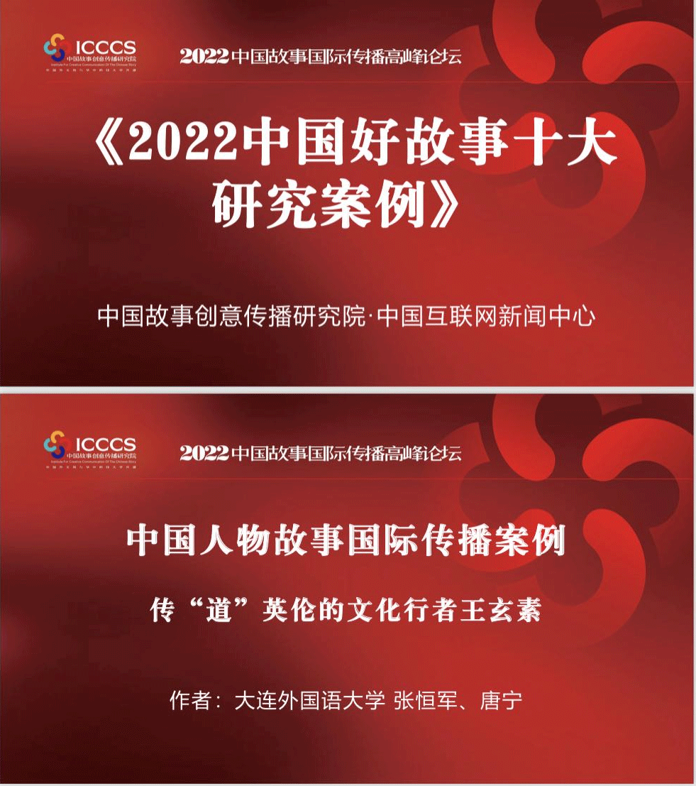 张恒军教授和研究生唐宁撰写、唐润华教授点评的《传“道”英伦的文化行者王玄素》从王玄素的生平出发介绍了其他乡悟道、英伦传道和交流明道的历程,讲述了王玄素如何凭借一己之力推动中国道文化走向世界的故事,荣获中国故事创意传播研究院(华中科技大学—中国外文局共建)颁发的“2022中国好故事十大研究案例”,获得会议主办方和与会专家的一致好评和充分肯定。