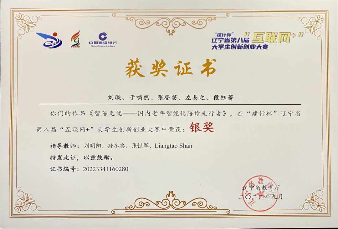 参赛项目“智陪无忧——国内老年智能化陪诊先行者”在省决赛中荣获银奖。
