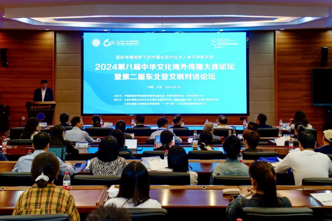 5月25日,由大连外国语大学、中国新闻史学会国际传播专业委员会、华夏传播研究会主办的2024第八届中华文化海外传播大连论坛暨第二届东北亚文明对话论坛在大外承志楼召开。来自海内外从事中华文化海外传播相关研究的近百位专家、学者围绕“国际传播视野下的中国式现代化与人类文明新形态”这一主题,对中华文化的海外传播策略、东北亚文明的历史与现状、文化交流与合作机制等议题进行了深入的探讨与交流。