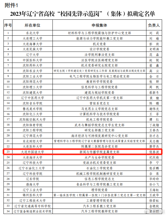 近日,辽宁省委教育工委公布了2023年全省高校“校园先锋示范岗”名单,国际博彩平台